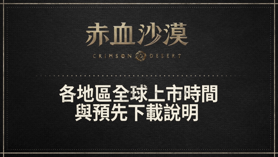 最新消息 赤血沙漠發售FAQ 各地區全球上市時間與預先下載說明 PC、主機、Mac 效能說明 聲優錄音介紹影片 赤血沙漠預覽影片 #3:在帕衛爾的生活 赤血沙漠預覽影片 #2: 戰鬥與成長 赤血沙漠預覽影片 #1:克里夫與帕衛爾的開放世界 赤血沙漠正式進廠壓盤 預購赤血沙漠特典贈送黑色沙漠限定版道具通知 赤血沙漠版本內容與預購特典 赤血沙漠發售日公開與預購開跑 TOKYO GAME SHOW 2025參展